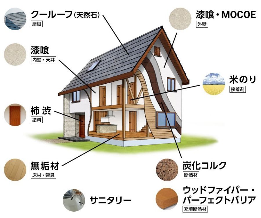- ※掲載の一覧は無添加住宅が供給する資材の一例です