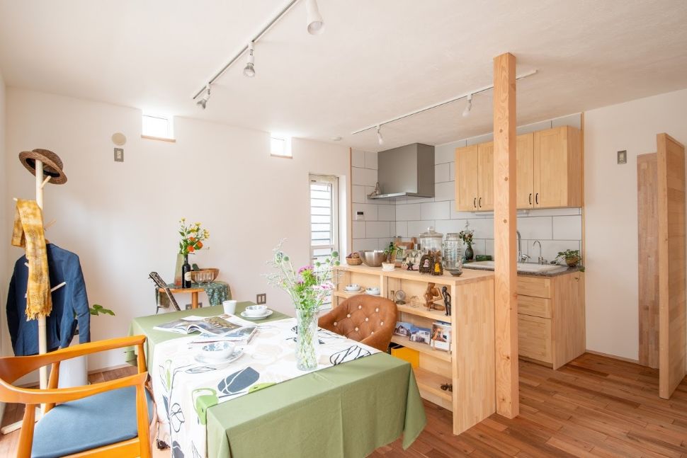 室内の特長はリビングに配置した2帖ほどの畳コーナーで、上を見上げると、階段ホールの吹抜けとリビングとが一体となった大空間を味わうことができる。また、将来ピアノ教室を開くことができるように1室のみ自然素材で防音性能を最大限に引き上げている。