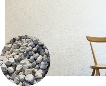 壁材のしっくいに水を加えて壁に塗りつけると、乾燥して空気中の二酸化炭素と化学反応し、再び元の石灰石と同じ成分に戻っていきます。その際、しっくいが硬化する過程で空気中の二酸化炭素(CO₂)を吸収することから、環境負荷に配慮した建材と言えます。