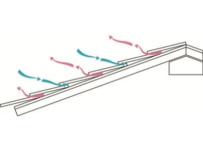 弊社独自のクールーフ工法により、屋根部の熱を自然の風力で自然換気することで、従来の屋根以上の涼しさを実現。実証実験では、無風状態では差がほとんど見られませんでしたが、約2.5m/sでは屋根表面まで大きな温度差が確認できました。