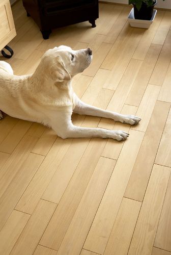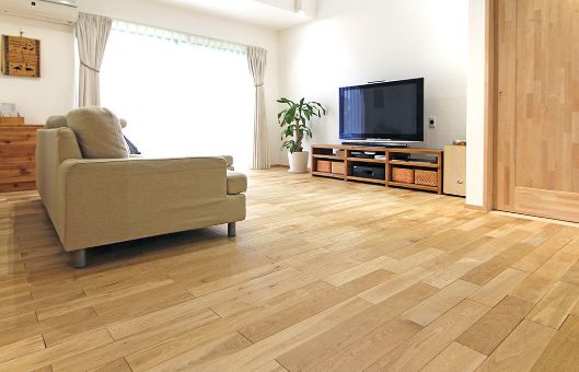 無垢材は、季節によって床のスキ間が開き、踏み音が出る場合がありますが、特別不快な音ではないと思います。空気中の水分が季節により違うため無垢材がそれを吸収したり吐き出したりするために起こる現象です。無垢の木にとってはとても自然なことなのです。室内の湿気を調節してくれるありがたい特性です。逆に、一年中どの季節も全く変化しないことを木材に求めることは、本来とても不自然なことなのです。