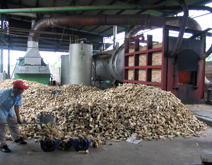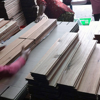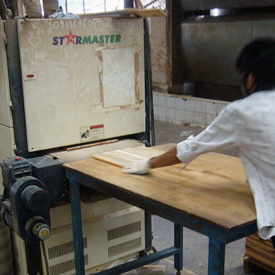 東南アジア産の輸入材は防虫・防カビのために薬剤による燻蒸処理を行うのが一般的です。表面処理だけでなく薬剤が加圧注入されていることもあります。だから無垢材といっても全ての製品が安全であるとは限らないのです。無添加無垢材は燻蒸処理を行わず、70℃くらいの高温釜に1週間ほど入れて防虫防カビ処理を行います。また、出荷するまでに-20℃の冷凍殺虫も行なっております。